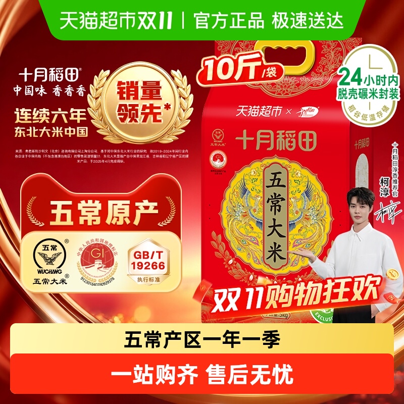 旗舰店十月稻田 【2024年新米上市】五常香米 五常大米 5kg 东北大米 粳米 5kg*2袋