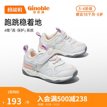 旗舰店基诺浦(ginoble)学步鞋机能鞋23秋新款透气减震1-5岁男女童鞋 GY1347 白色/粉色/浅青色 160mm_内长17/脚长15.6-16.5cm