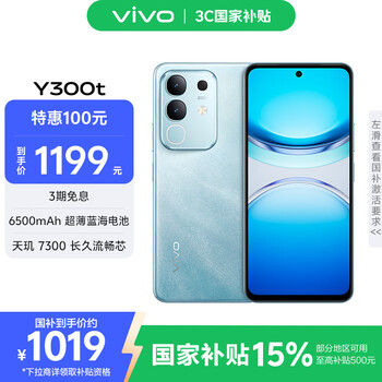 自营vivo Y300t 8GB+256GB 海蓝 国家补贴 6500mAh超薄蓝海电池 天玑7300长久流畅芯 全功能NFC AI手机