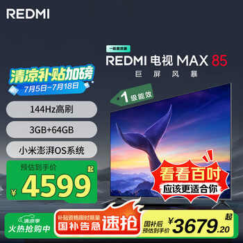 自营小米(MI)电视REDMI MAX85 2025款 【小米YU7/SU7 同家族成员】85英寸144Hz高刷WiFi6一级能效L85RC-MAXE