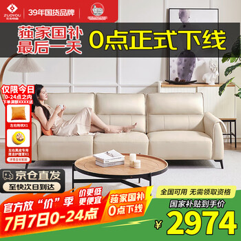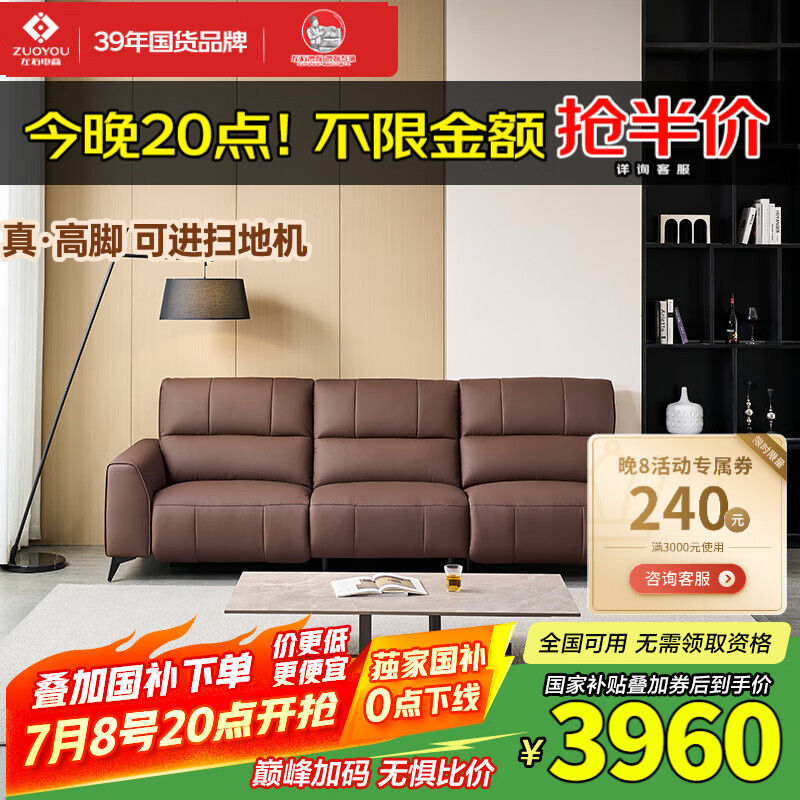 自营左右现代简约头层牛皮沙发高脚可进扫地机沙发6073 2.77米小三 咖