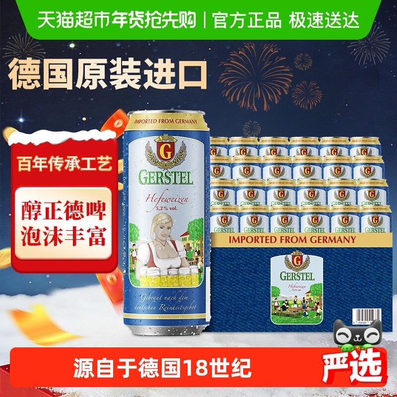 【严选】德国5.2度小麦白啤进口啤酒500ml*24听整箱装奥丁格G系列