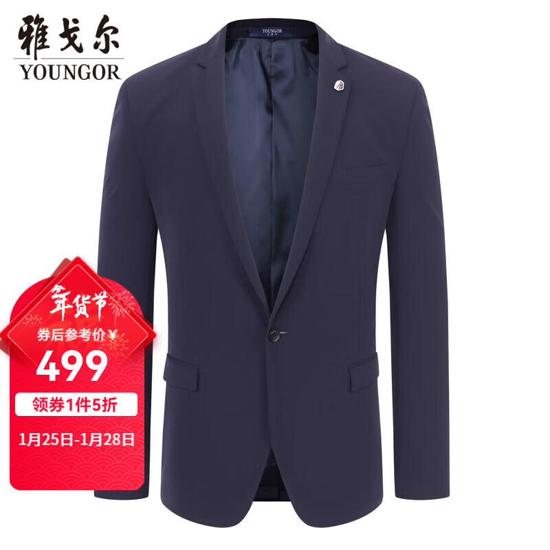 旗舰店雅戈尔(YOUNGOR)套西上衣男5101F款一粒单排扣修身版商务西服舒适弹力易打理 藏青 XL 180/96A