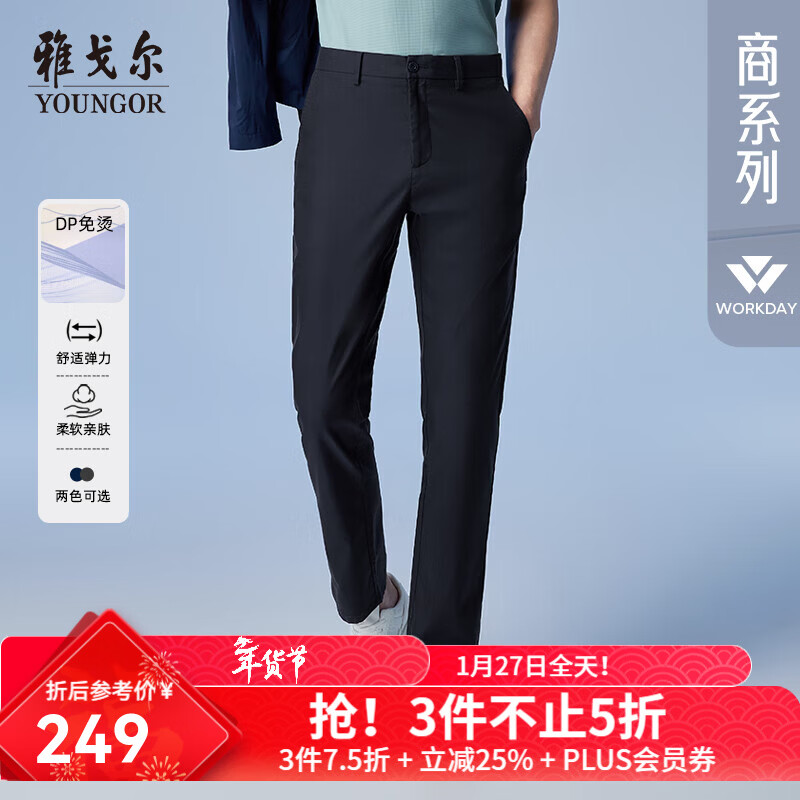 旗舰店雅戈尔(YOUNGOR)休闲裤男DP棉免烫不易皱裤子自然垂顺易打理新品 藏青 34 180/86A