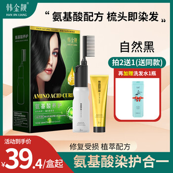 旗舰店韩金靓 氨基酸染发剂植物自然遮白发纯黑色染头发膏男女士染发梳 自然黑 180ml*1盒 【可盖白发】
