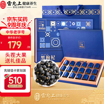 旗舰店雷允上【官方】 宁夏枸杞子 中卫头茬黑枸杞 80g 可搭党参养生茶饮 养悦心黑枸杞 礼盒装360克(20gx18罐)