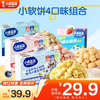 旗舰店小鹿蓝蓝益生元芝士小软饼儿童零食宝宝营养米饼芝士饼干 原味+草莓+蓝莓+芝士4口味组合