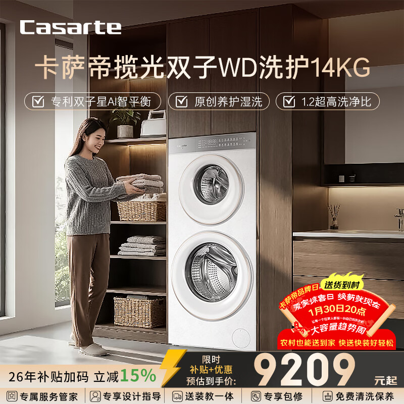 自营卡萨帝(Casarte)揽光WD双子14KG 分区洗多筒 滚筒洗衣机全自动 家电国家补贴 CS B14LWGWDU1