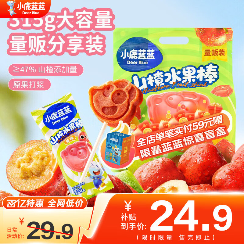 百亿补贴小鹿蓝蓝山楂棒棒糖鲜果膳食纤维独立包装宝宝零食315g 1袋