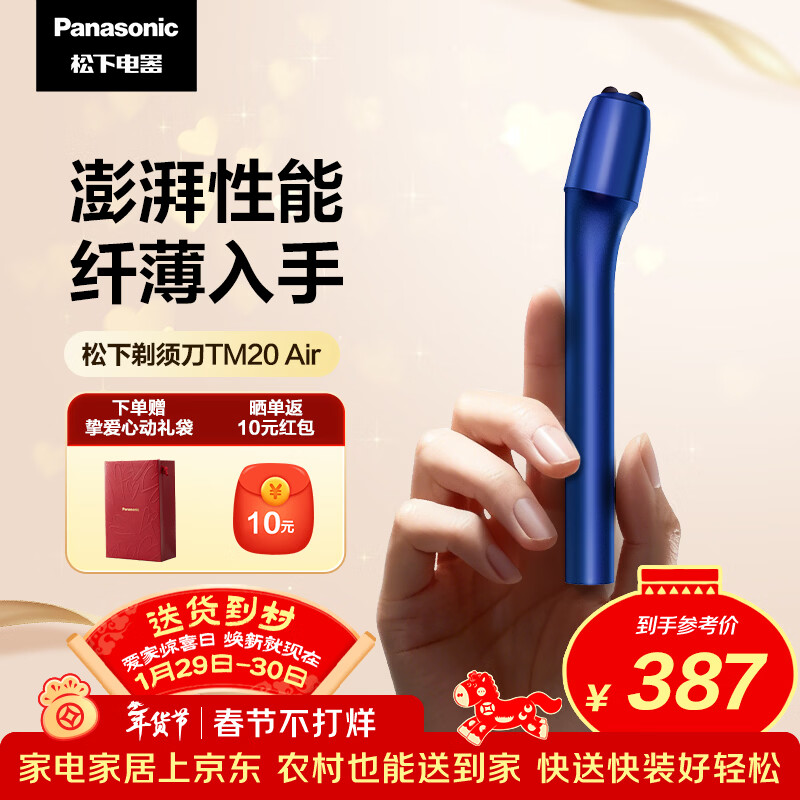 自营松下(Panasonic)Air电动剃须刀便携款进口磁悬浮剃须刀纤薄往复式电动刮胡刀Type-c情人节礼物男生TM20蓝生日礼物