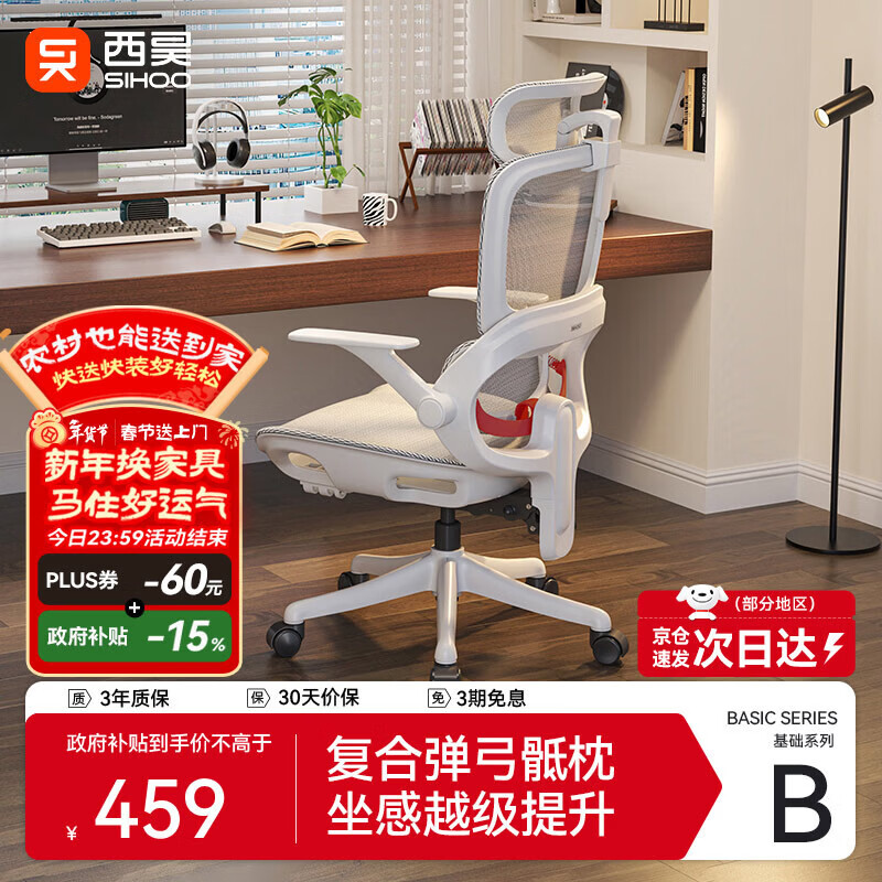 百亿补贴西昊B100Lite 人体工学椅办公椅电脑椅子人工力学座椅久坐电竞椅补贴 B100Lite云白 弹弓骶枕+分区承托 无脚托