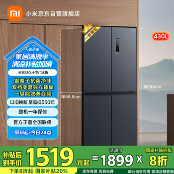 自营米家小米【国家补贴20%】430L十字四开门家用超薄一级变频除菌净味以旧换新官方正品冰箱BCD-430WMSA