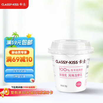 自营卡士(CLASSY.KISS)草莓味鲜酪乳120g*6杯 低温酸奶 酸牛奶 风味发酵乳