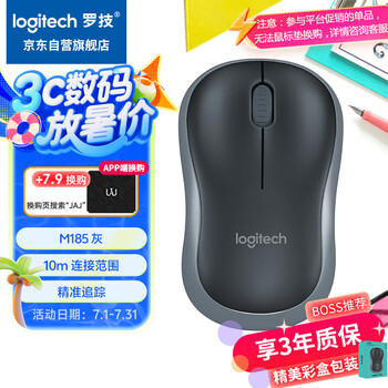 自营罗技(Logitech)M185鼠标 无线鼠标 办公鼠标 对称鼠标 黑色灰边 带无线2.4G接收器