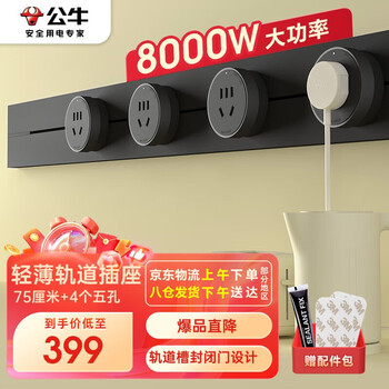 自营公牛(BULL)明装 轨道插座轻薄款GB3可移动墙壁插座壁挂式插座 免开槽 75厘米轨道+4个五孔适配器开关墨云灰
