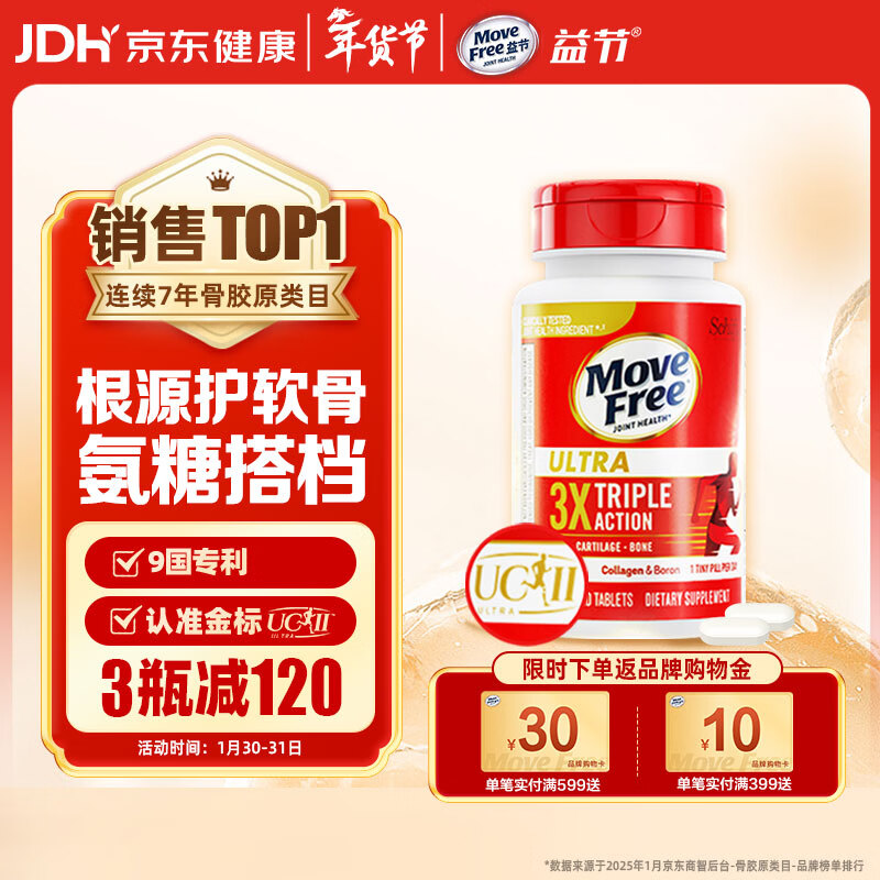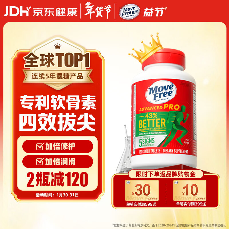 自营Move Free益节 金装氨糖软骨素 钙片 120粒 维骨力 成人中老年 美国进口