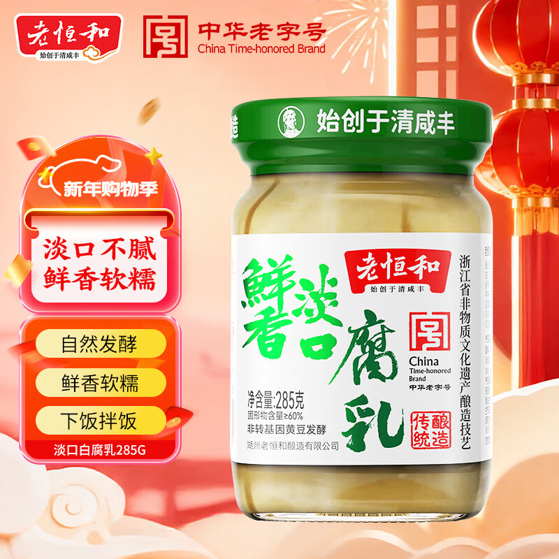 自营老恒和 鲜香淡口腐乳(槽方)285g 拌面拌饭酱下饭菜火锅蘸料佐餐小菜