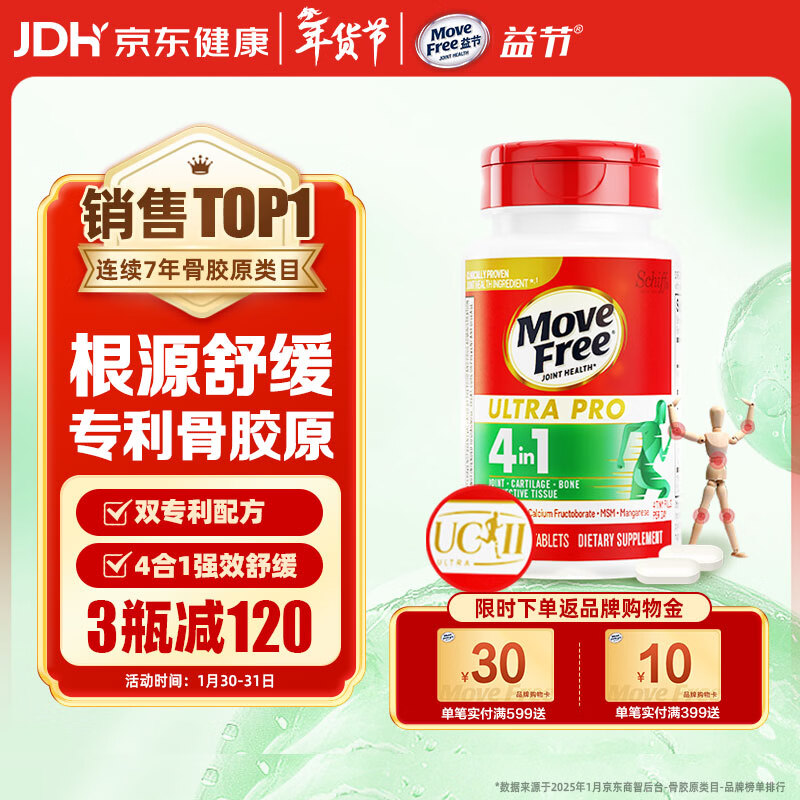 自营Move Free益节舒缓骨胶原120粒*2 蛋白肽关节肽氨糖软骨素搭档 美国进口