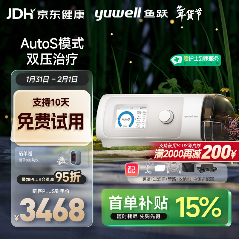 自营鱼跃825Auto双水平全自动睡眠呼吸机打呼噜家医用憋气呼吸暂停止鼾