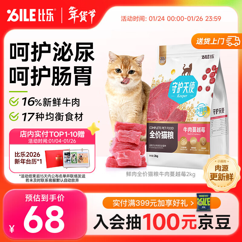 自营比乐牛肉蔓越莓成猫幼猫通用2kg全价猫粮4斤
