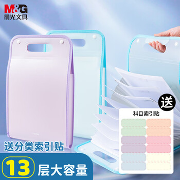 自营晨光(M&G)13格手提风琴包 试卷夹多层文件夹便携试卷收纳袋资料册学生可放书包文件框蓝色AWT909F0