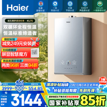 自营海尔(Haier)【KL7S】16升燃气热水器天然气 顶配双循环全程恒温 TSI增压200%【国家补贴15%】一级静音以旧换新
