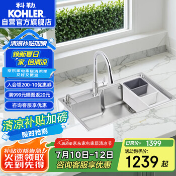 自营科勒(KOHLER)大单槽304不锈钢加厚水槽洗碗池抽拉龙头套餐28409套餐