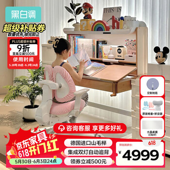 自营黑白调儿童S2学习桌儿童书桌学习桌椅升降桌小学生写字桌3-18岁电脑桌1.2m粉