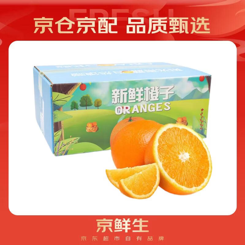 自营京鲜生 奉节脐橙 净重9斤 单果约230g起 生鲜水果橙子年货礼盒