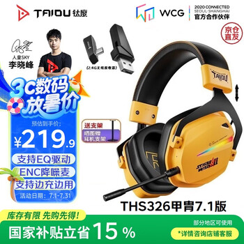 自营钛度(Taidu)【全网热销】THS326 无线7.1版2.4G无线蓝牙有线 四模头戴式游戏电脑电竞耳机 三角洲行动 闪电黄
